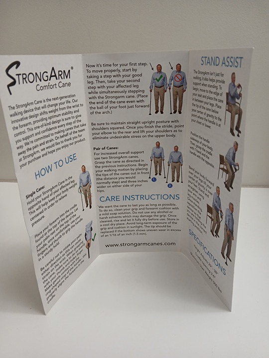 FDA approved ergonomic cane that can be used on both right and left arms.